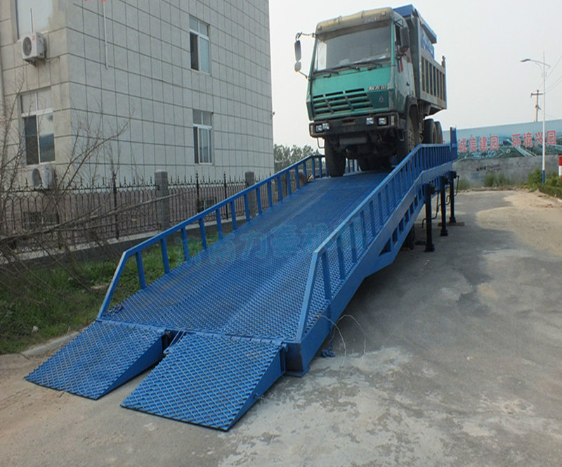 ??移動式登車橋產品,它主要應用在物流貨運、各類車站、碼頭、工廠倉庫等貨運量大,但又不方便做貨臺的場所,能夠在地面和運輸車輛之間搭起一座橋,達到裝卸貨目的,該設備一端與地面接觸,另一端搭接在車廂后緣上,并能根據不同車型及裝車過程中車廂的變化,自動調整高度,從而大大提高工 作效率。主體部分采用矩形管焊接而成,強度高,承載能力大;液壓系統采用進口手壓泵,安全耐用;橋面采用高強度鋼板網,增加了磨擦系數,便于叉車的行駛, 減輕了橋體的自身重量,使移動更加靈活。