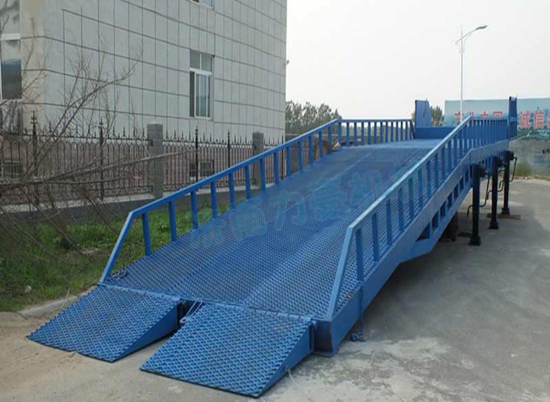 ??液壓登車橋與叉車配合使用的貨物裝卸輔助設備,根據汽車車廂的高低調節高度,叉車可以直接通過本設備駛入車廂內部進行貨物的批量裝卸,僅需單人作業,即可實現貨物的快速裝卸。它使企業減少大量勞力,提高工作效率,獲取更大經濟效益。